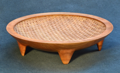 The Kava ceremony is about fostering community bonding. Weaving is created by interlocking strands to form a single unit. Combining a Kava bowl and the weaving somehow conveys a sense of unity. 32 X 7cm, Pohutukawa, Rata weaving.