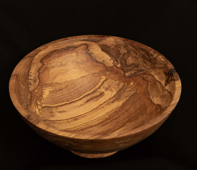A salad bowl made from 2 layers of Black Maire, embossed on the outer side to disguise the join with the same embossing pattern repeated on the foot. The finished dimensions are: Diameter : 290mm Height: 110mm Wall thickness: 10mm The inside is finished with foodsafe Shell Ondina Oil, the outside is buffed Miratone sanding sealer