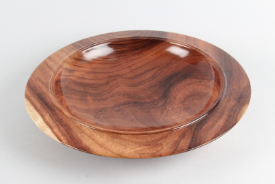 Wooden items which have been made from one or many pieces of wood into a bowl or platter shape which has been carved, decorated, coloured, textured, embellished or otherwise enhanced and remains functional.
