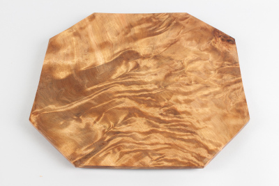 A simple 310mm wide by 40mm thick piece of milled kauri made into a useful sandwich plate. Finished with Haarlem Danish oil.